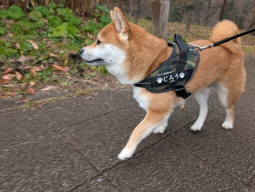 なんだか真剣に散歩しとらす。今日は町田の平和を守るレンジャー犬(風)でいくらしい。