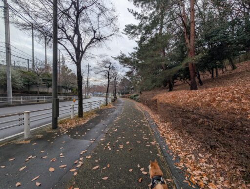 一周するとまあまあ距離があるので、長くなったと思ったら、尾根緑道のドッグランが下に見える辺りで、ドッグランと反対方向に階段を下りてショートカットするのも良いかもしれない。(階段になっちゃうけど)