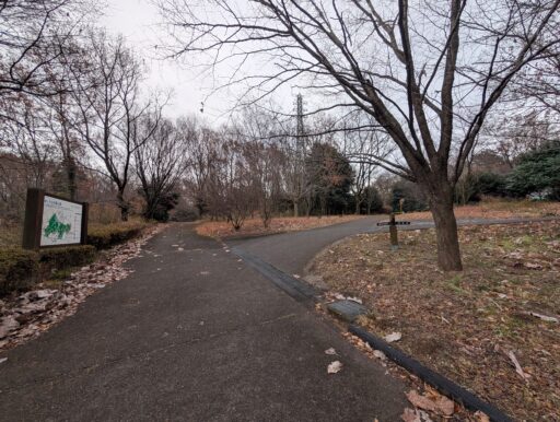 しばらく緩やかな上り坂を進んで分かれ道に。この公園、分かれ道にたいてい案内図があってとても親切。道がちょっとややこしいけど、尾根緑道の方へ。