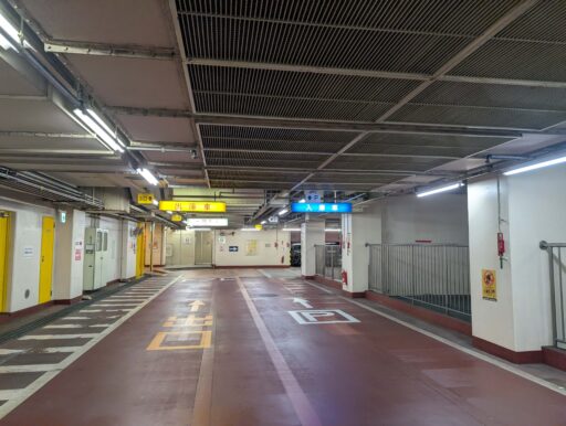 自走式の屋内駐車場は古いけど広い。夏場も車内が暑くなりにくくて良いかもしれない。(たぶんだけど)