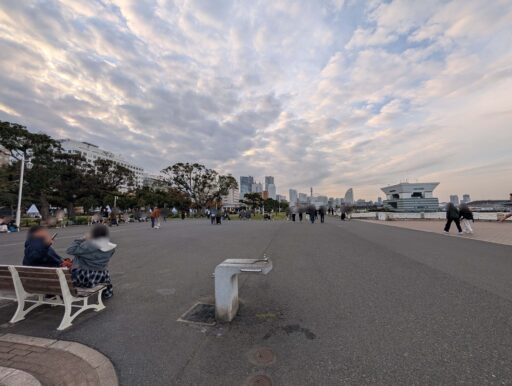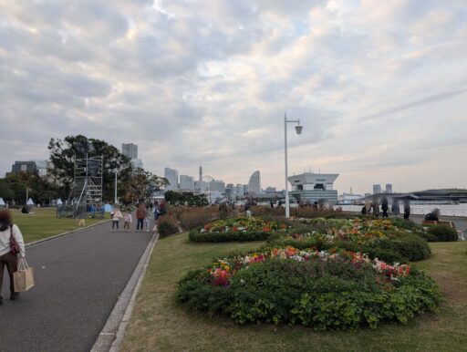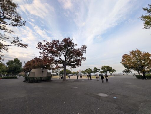 アスファルトの広場や、芝生のエリア、海にせり出したブロック舗装のエリアとか、平坦だけど結構変化があるな。
