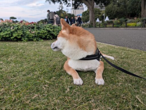 ハーネスに名前を入れてるから、知らない人達からたくさん名前を呼んでもらった。そして、外国人観光客らしき方から「写真を撮らせて~」ってのも何回か。ジャパニーズ ミニシバ ダヨ。