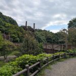 池から良い感じの坂道を上る。所々に置いてある大きい石は、よく見ると上面が平らに削られてベンチになってる。こういうの景色に溶け込んで良いな。