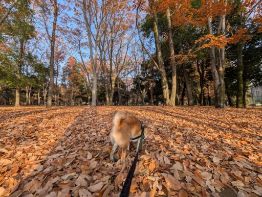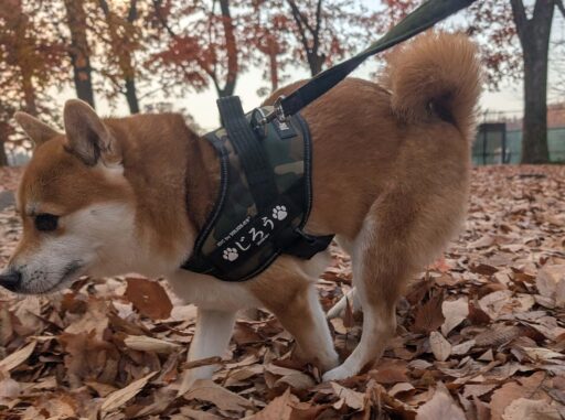 ジロウは落ち葉の中歩くの大好きだけど、真剣な顔になるのなんなんだろ。落ち葉ソムリエ的な?って思うとカッコイイ。オヤツあげる。