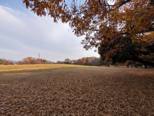 もう少し進んで「大きな広場」へ。シンプルで潔いネーミング、分かり易くて良いと思う。都立公園って、誰かの影響なのか長いカタカナ言葉を多用するイメージ。
