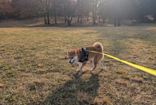 広場で周りに人もいないから、伸びるリードに替えてフリータイム。ひゃっほ~、たのし~。