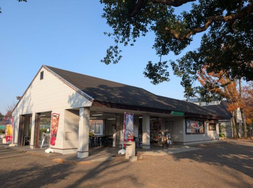 「花のプロムナード」の途中にある「売店」はオープンなテーブル席もあるけど、「ワンちゃんなどのペットはご遠慮ください」だそうな。テイクアウトメニューも色々あるらしいから、園内で食べるに良いかもしれない。(ただ、ここも1人でワンコ連れだと買うの無理かもしれない)