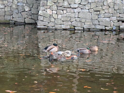 ジロウは駐車場隣の「石垣壁泉」でマガモ(?)をず~っと観察。どういう気持ちで見とると?鳥はトモダチ、獲物じゃない(タートル・トーク風)