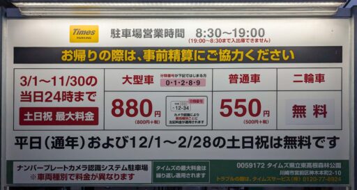 メモ駐車場営業時間やイベントは最新情報を確認してください
