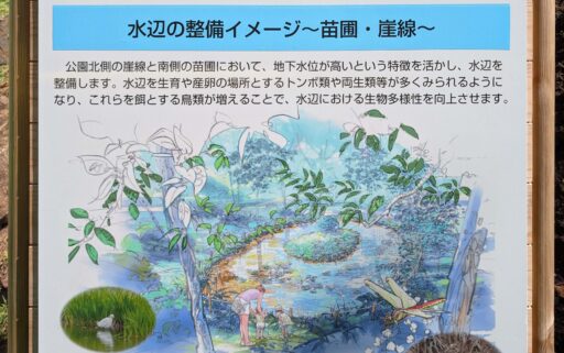2025年9月時点で工事中だけど、水辺ができるらしい。現状でも良い公園だと思うけど、少しずつ改良されるのも楽しみ。