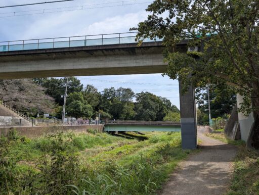 野川の両岸に道があって、途中の橋で対岸に渡ることもできる。この辺りは抜け道になっているのか、たまに自転車が来る。見通しは良いから、たまにキョロキョロして注意しよ。