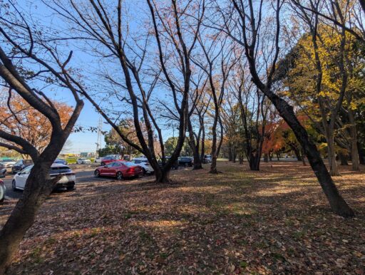 今回停めた第二駐車場。ドッグランの道向かいにあって、自由広場の入口もすぐ近くだから、ワンコ散歩なら第一よりこっちが便利。