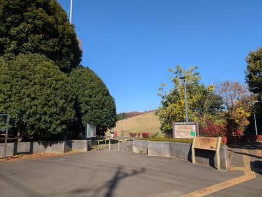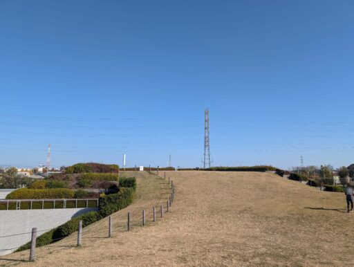 小さい山の傾斜がわかるよう、水平に撮ったらこんな感じ。シニア犬や歩行器を使うワンコにはちょっと厳しそう。上ったとこからの景色は良いから、抱っこできるならそれでも良いかな。