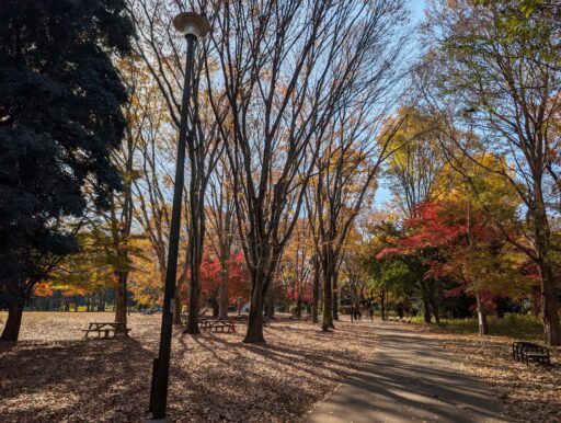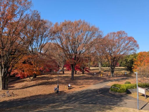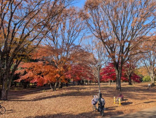 公園内の所々に健康器具があって、交代で使われたりしてた。調布の方々は健康意識が高いんだろかね。