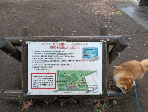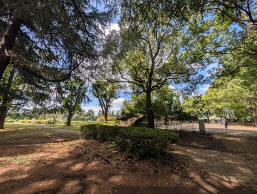 この公園、東八道路を挟んだ北側には野川が流れるエリアがあって、いくつかある歩道橋(スロープ)や地下道で渡ることもできる。川沿いの道はまた雰囲気が違って気持ち良い。今回は写真を撮ってないので次の機会に。運動量の多いワンコだったら、野川沿いに武蔵野公園まで歩いても良いかもしれない。