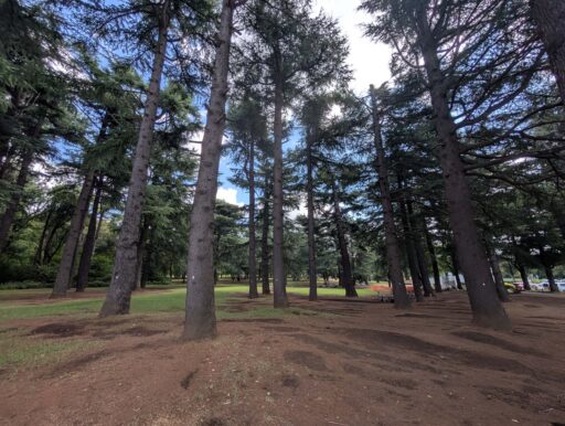 夏は広い木陰が嬉しい貴重な公園だけど、どの季節でも気持ちよく散歩できる。歩道以外の草地、芝生もキレイで歩きやすい。