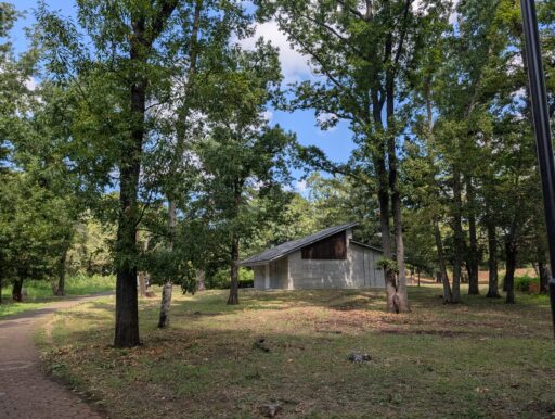 駐車場のすぐ横から大きい木々に囲まれて歩けるけど、BBQ広場ということでささっと素通り。(通っていけないとかはない)