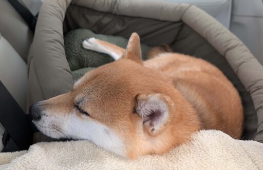 広い公園を歩き回って、たくさんニオイを嗅いで、芝生で遊ぶスイッチON!(柴犬あるあるらしい)、犬用ゼリー食べて水飲んで、クルマ出発したらすぐスイッチOFF。良い一日だ~。