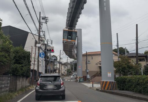 大船駅から公園に向かうと、住宅街のそれ程広くない道に湘南モノレールが走ってて面白い。実際に遭遇すると近く見えてドキドキしてしまう。実は乗り物好きなのです。(実は、って程でもないか)