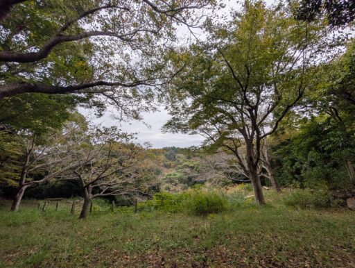 坂を上りきると疎林広場に出る。名前の通り木がまばらに生えた林で、小さい上り下りがある草地と土の広場。